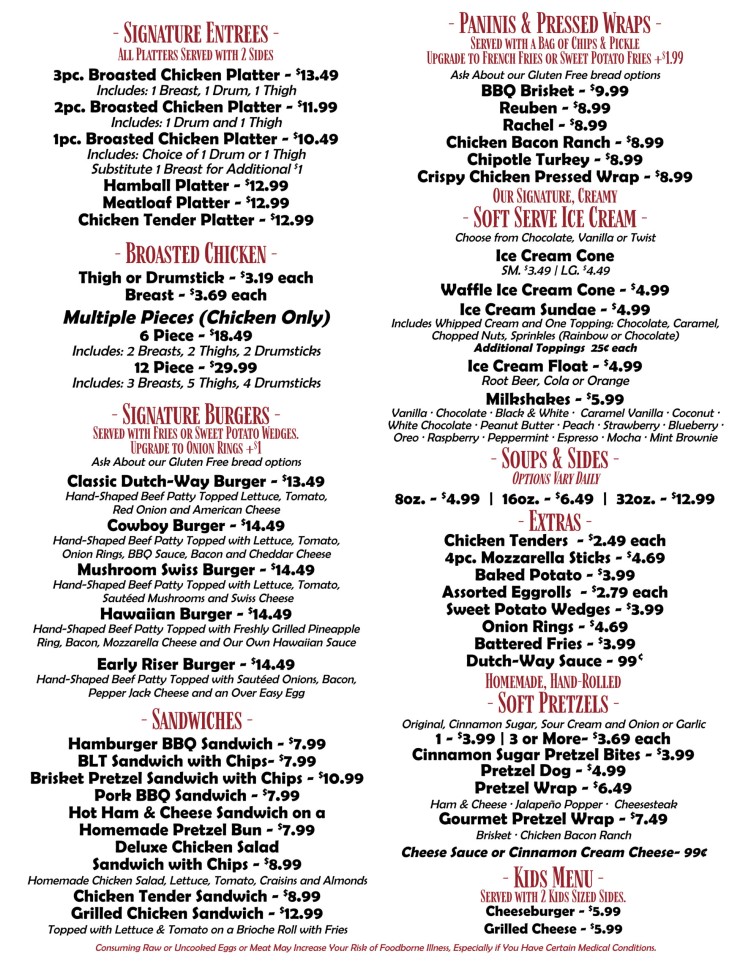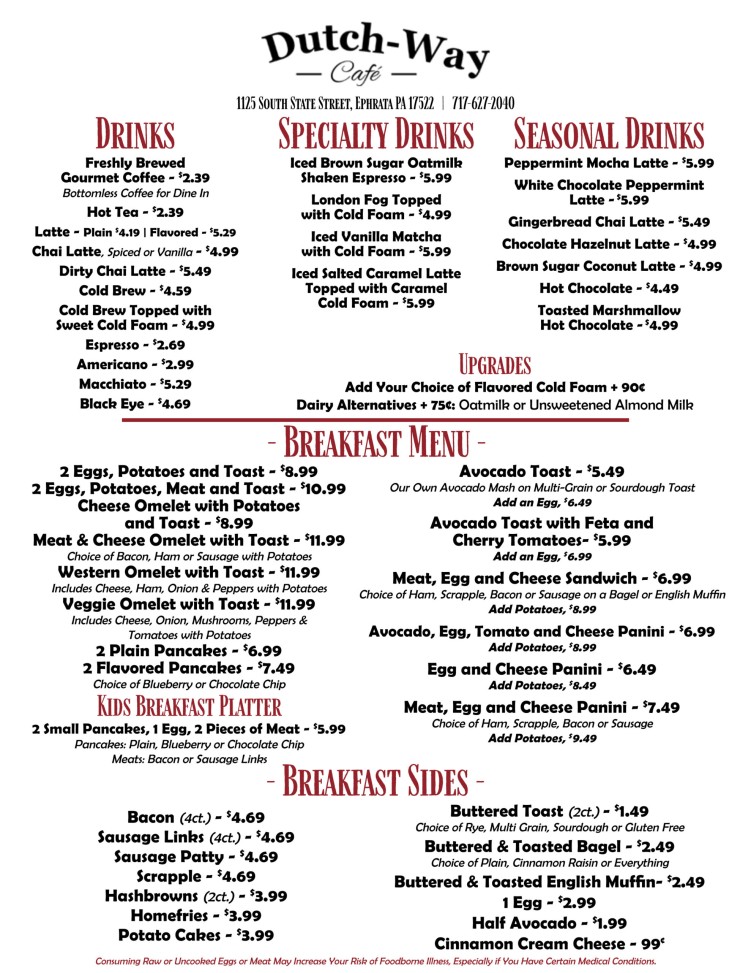 Ephrata Cafe Menu