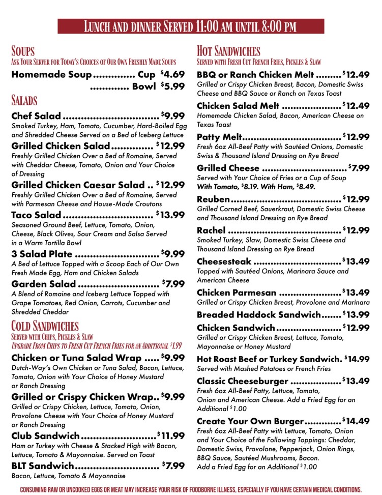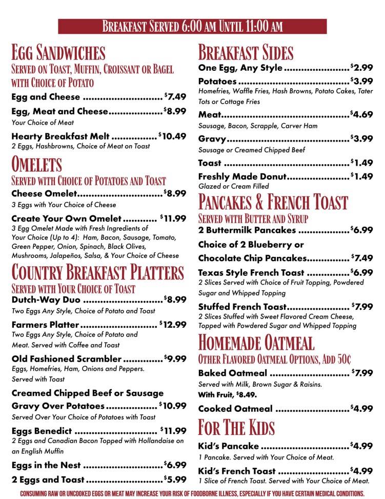 Myerstown Restaurant Menu
